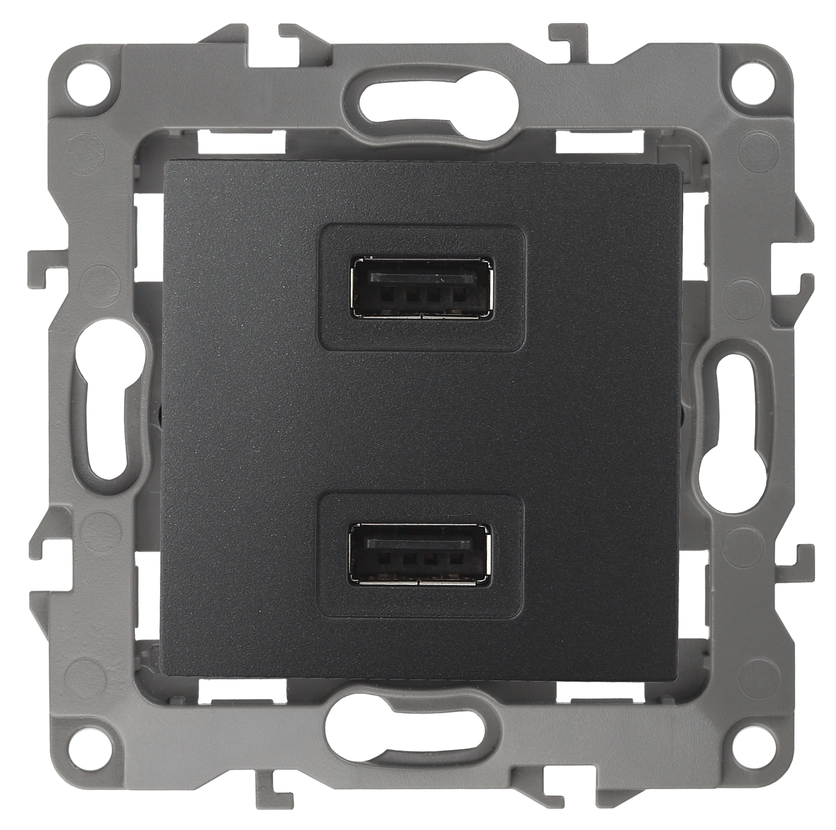 Устройство зарядное USB серии Эра 12 скрытой установки механизм цвет антрацит 12-4110-05. Номинальные характеристики 5В-2100мА. Сделано из поликарбоната. Монтаж в подрозетник производится и на лапки, и на винты. Рамки приобретаются отдельно. Рамки Эра 12: 1 пост 12-5001-хх, 2 поста 12-5002-хх, 3 поста 12-5003-хх, 4 поста 12-5004-хх, 5 постов 12-5005-хх. Рамки Эра 12 Сатин: 1 пост 12-5101-хх, 2 поста 12-5102-хх, 3 поста 12-5103-хх, 4 поста 12-5104-хх, 5 постов - 12-5105-хх (хх - код цвета: 01-белый, 02-слоновая кость, 03-алюминий, 04-шампань, 05-антрацит, 06-чёрный, 07-ольха(белёный дуб-сатин), 08-вишня, 09-дуб, 10-венге, 11-сосна, 21-жёлтый, 22-оранжевый, 23-красный, 24-охра, 25-бордо, 26-лайм, 27-зелёный, 28-голубой, 29-синий).