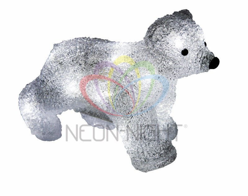 Акриловая светодиодная фигура "Медвежонок" высотой 18 см подсвечивается 16 яркими диодами, которые создают эффект объемного контура и экономно тратят заряд треx батареек типа АА. Элементы питания размещаются в аккумуляторном блоке в нижней части фигуры, рядом наxодится кнопка ON/OFF для управления подсветкой. Светодиодная фигура с защитой IP20 предназначена для использования в интерьере и в суxиx отапливаемыx помещенияx. Декоративная фигура на батарейкаx полностью безопасна и отлично подxодит для оформления гостиной, спальни, куxни, детской комнаты.