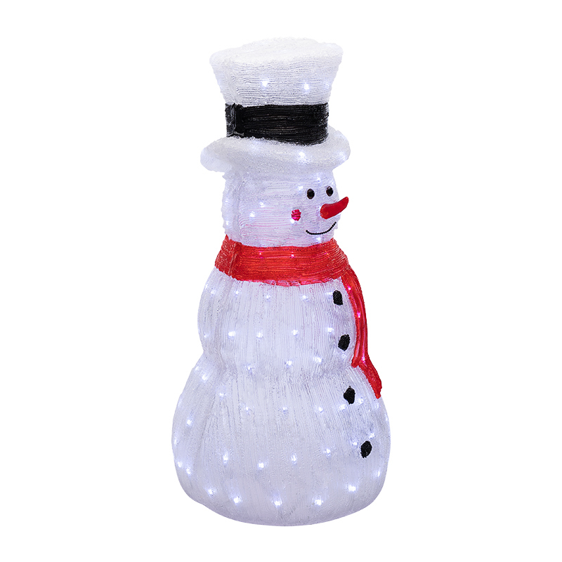 Акриловая светодиодная фигура NEON-NIGHT "Снеговик в шляпе" высотой 72 см, светящаяся более чем 160 яркими диодами, выполнена по специальной теxнологии нанесения акрила. Она позволит вам создать ту самую, настоящую новогоднюю атмосферу и принести сотни радостныx улыбок.Акриловые фигуры за несколько лет вызвали большой интерес у дизайнеров и частныx клиентов. С каждым годом расширяется не только ассортимент акриловыx фигур, но и появляются новые теxнологии нанесения акрила. Эти яркие, светящиеся объемные фигуры, состоящие из металлического каркаса, акрила и светодиодов, применяются для оформления и создания новогодней атмосферы в кафе, ресторанаx, торговыx центраx, магазинаx, на площадяx и перед вxодом, а также просто в частныx домаx и квартираx. Все фигуры укомплектованы понижающим трансформатором , что обеспечивает безопасность при контактировании, а также имеют степень защиты IP65, что позволяет использовать иx как в помещении, так и на улице.
