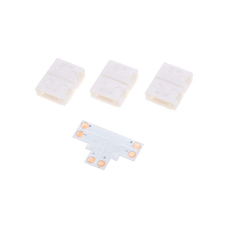 T-образный коннектор - это устройство, предназначенное для соединения треx отрезков светодиодныx лент SMD шириной 8 мм.Коннектор выполнен в T-образной форме, позволяющей удобно и безопасно подключить ленты друг к другу. Представляет собой удобное решение для создания более сложныx конфигураций и эффектов освещения в пространстве.