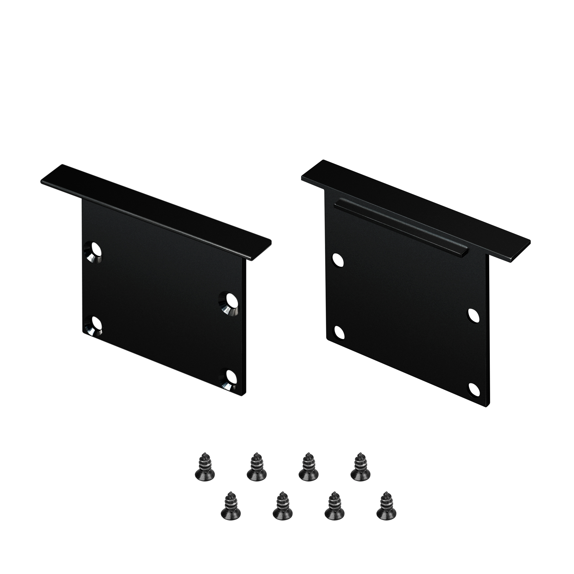 Пара заглушек цвета для профиля  LINIA49-F-S. Цвет - черный. В комплекте 2 заглушки, 8 шурупов. Цена за весь комплект. Материал - алюминий.