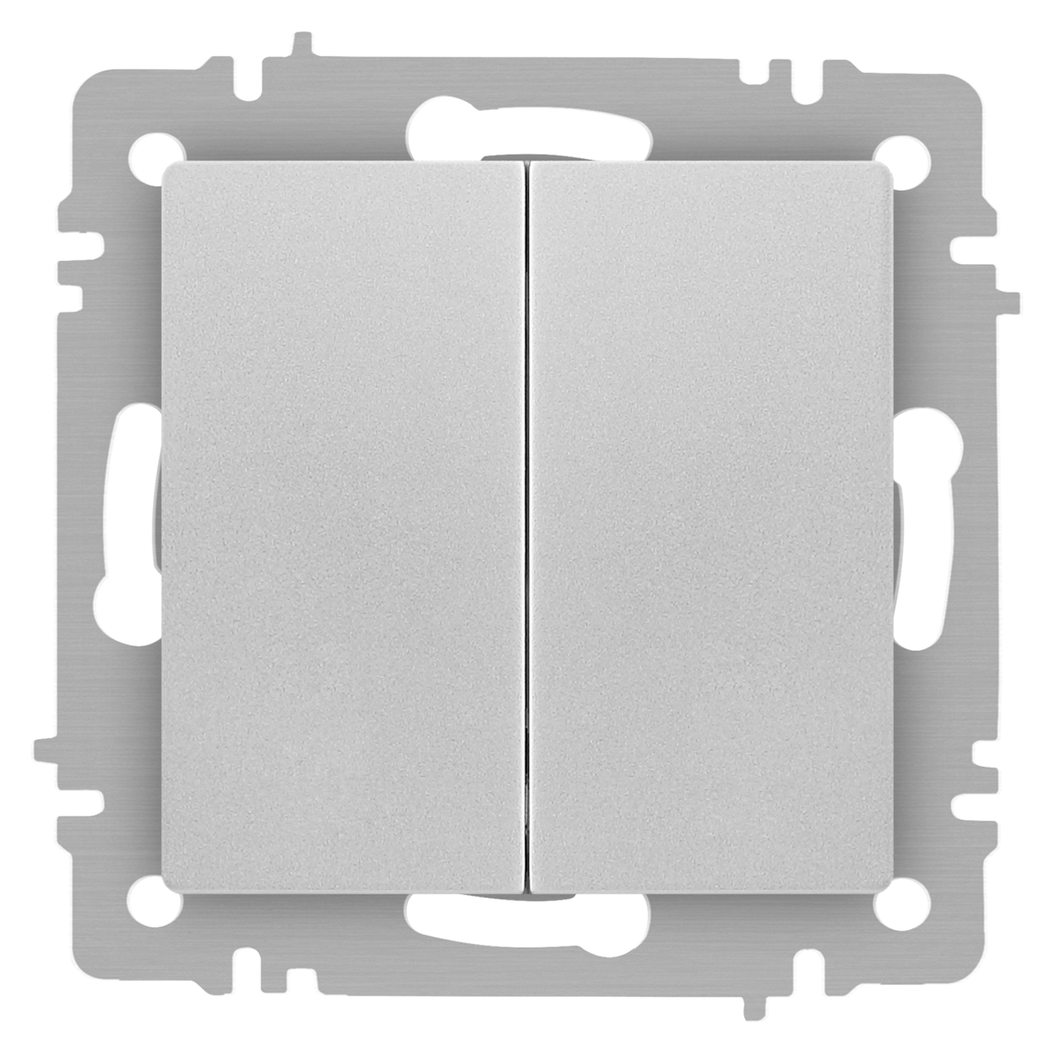 Выключатель 2-клавишный серии Intro Accent скрытой установки механизм цвет алюминий 6-104-03. Номинальные характеристики 10А 250В. Выполнен из негорючего термопласта, оснащён винтовыми клеммами. Парные клеммы обеспечивают соединение шлейфом. Монтаж в подрозетник производится и на лапки, и на винты. Рамка приобретается отдельно. В серии представлены рамки до 5 постов: на 1 пост - 6-501-хх, на 2 поста - 6-502-хх, на 3 поста - 6-503-хх, на 6 поста - 4-504-хх, на 5 постов - 6-505-хх (где хх - цветовой код: 01 - белый, 01М - матовый белый, 02 - слоновая кость, 03 - алюминий, 04 - шампань, 05 - антрацит, 06 - перламутр, 07 - графит, 08 - бронза, 09 - титан, 10 - венге, 11 - сосна).