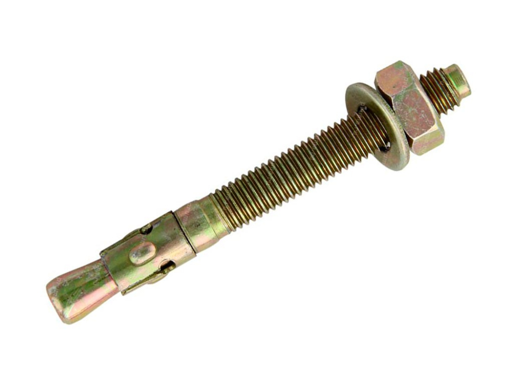 Конструкция: шпилька с метрической резьбой, с одной стороны которой расположена распорная втулка с лепестками, с другой стороны зауженный оголовок, который предотвращает деформацию резьбы при забивании анкера молотком. Дополнительно анкер комплектуется гайкой и шайбой.
