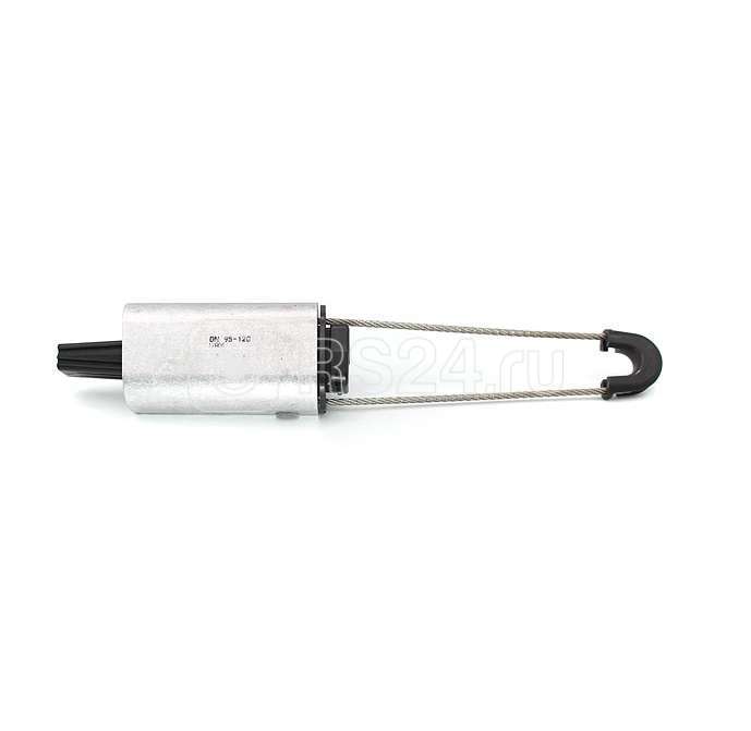 Предназначен для крепления изолированной нулевой несущей жилы (СИП-2) с сечением 95-120 мм2 на анкерных и анкерно-угловых опорах. Зажим обеспечивает надежную фиксацию и удержание проводов путём натяжения при монтаже воздушных линий электропередач. Крепится на опорах с помощью крюков и кронштейнов. Установка зажима производится благодаря наличию тросика. Корпус выполнен из алюминиевого сплава методом экструзии, что обеспечивает высокую надежность зажима и его устойчивость к механическим воздействиям. Саморегулирующиеся клинья из полимера, устойчивого к ультрафиолетовому излучению, выполнены с особым рельефом, надежно фиксирующим проводник, не повреждая изоляцию. В месте установки зажима защитная изоляция с жилы не снимается, тем самым, герметичность провода не нарушается. Тросик из нержавеющей стали, с шаровыми креплениями на обоих концах для удобства монтажа и надежной фиксации, имеет специальную накладку (коуш), защищающую его от износа при креплении на кронштейне (крюке). Установка зажима производится без инструментов. Обладает высокой прочностью, устойчивостью к ультрафиолету, коррозии, воздействию экстремальных температур, влажности и другим погодно-климатическим факторам.