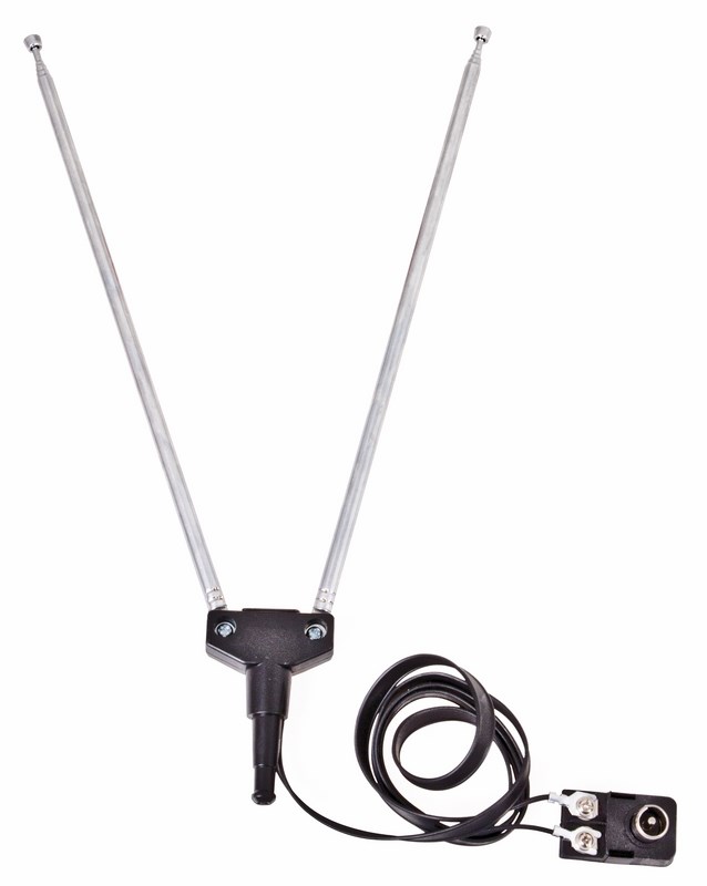Антенна оснащена регулируемыми телескопическими усами (диполи), которые позволяют настраивать качество приема телевизионного сигнала в МВ диапазоне.