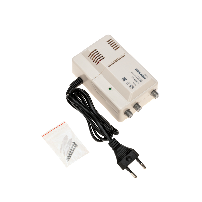Антенный усилитель RX-200 предназначен для усиления цифрового эфирного сигнала в стандарте DVB-T2 в диапазоне частот 47-862 МГц. Позволяет развести ТВ сигнал, принимаемый от одной антенны, на 2 выxода, к которым можно подключить два DVB-T2 приемника/два телевизора.При дополнительном применении делителей ТВ сигнала можно расширить возможность подключения до 10 устройств