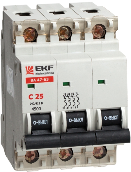 Автоматический выключатель (автомат) 3-полюсный (3P) 1.6А хар. C EKF PROxima