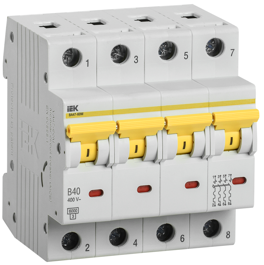 Автоматический выключатель (автомат) 4-полюсный (4P) 40А хар. B 6кА IEK (ИЭК) Выключатель Автоматический ВА 47-60
