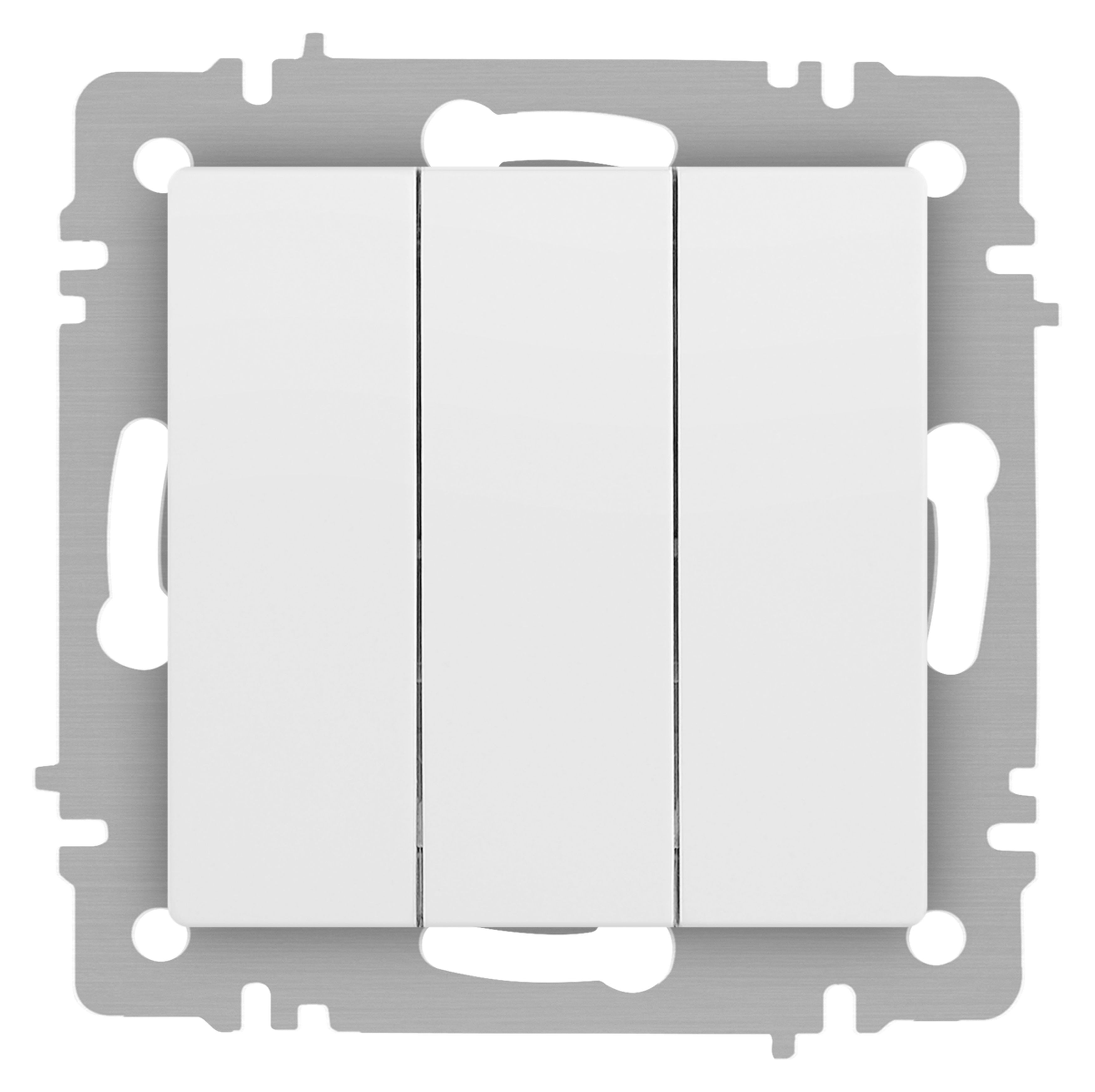 Выключатель 3-клавишный серии Intro Accent скрытой установки механизм цвет белый матовый 6-106-01М. Номинальные характеристики 10А 250В. Выполнен из негорючего термопласта, оснащён винтовыми клеммами. Парные клеммы обеспечивают соединение шлейфом. Монтаж в подрозетник производится и на лапки, и на винты. Рамка приобретается отдельно. В серии представлены рамки до 5 постов: на 1 пост - 6-501-хх, на 2 поста - 6-502-хх, на 3 поста - 6-503-хх, на 6 поста - 4-504-хх, на 5 постов - 6-505-хх (где хх - цветовой код: 01 - белый, 01М - матовый белый, 02 - слоновая кость, 03 - алюминий, 04 - шампань, 05 - антрацит, 06 - перламутр, 07 - графит, 08 - бронза, 09 - титан, 10 - венге, 11 - сосна)