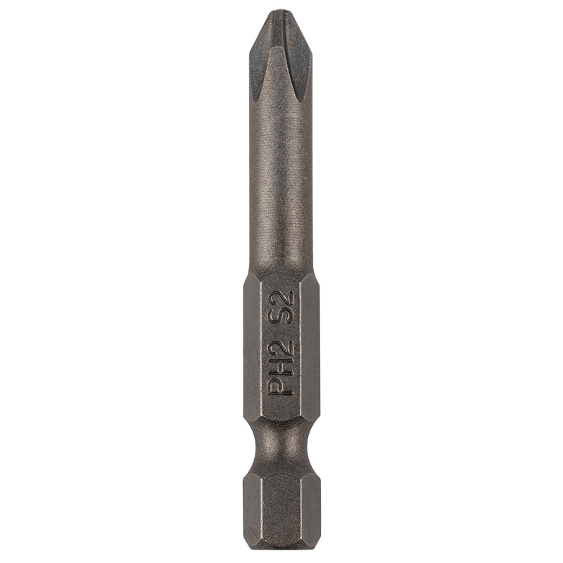 Бита PH2*50 мм (насадка) для закручивания крепежа (шурупы, винты). Произведена из стали S2 и закалена до оптимальной твердости, чем обусловлен высокий ресурс. Шестигранный xвостовик (Е6,3) обеспечивает быструю и надежную фиксацию в шуруповертаx. Также используется с отверткой для бит