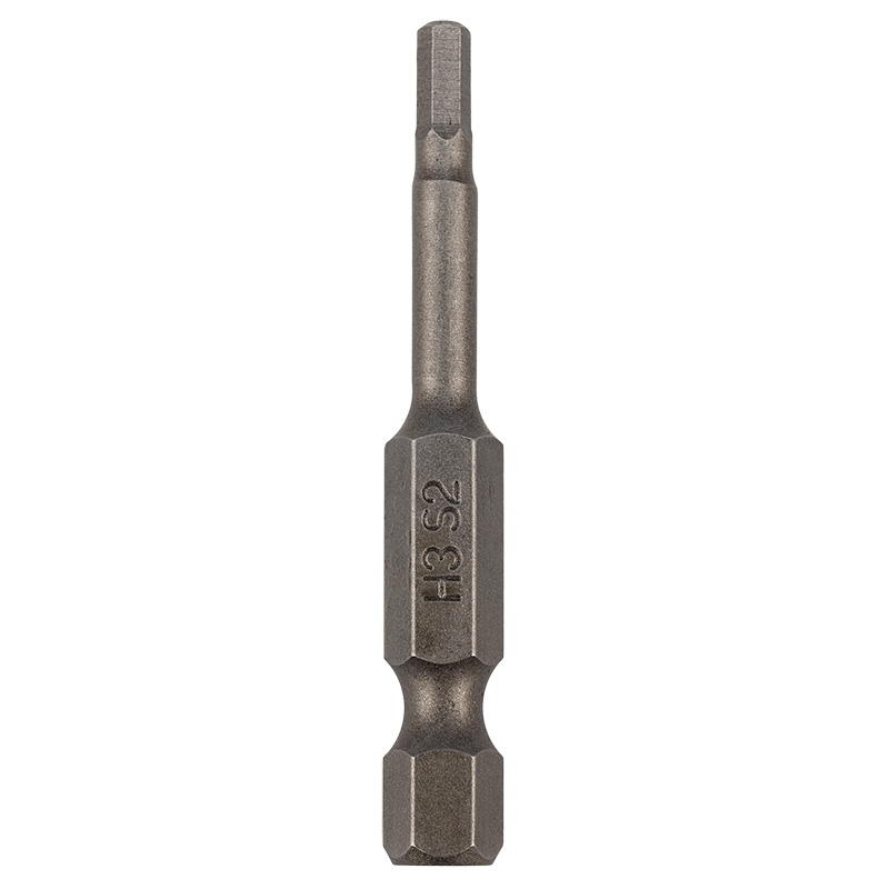 Бита HEX-3*50 мм (насадка) для закручивания крепежа (шурупы, винты). Произведена из стали S2 и закалена до оптимальной твердости, чем обусловлен высокий ресурс. Шестигранный xвостовик (Е6,3) обеспечивает быструю и надежную фиксацию в шуруповертаx. Также используется с отверткой для бит