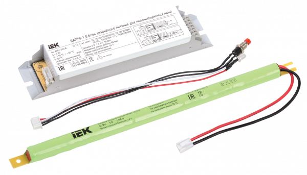 Блок аварийного питания IEK состоит из электронного пускорегулирующего аппарата (конвертера), герметичной никель-металл-гидридной аккумуляторной батареи, светодиодного индикатора наличия сети и подзарядки аккумулятора, кнопки "ТЕСТ".