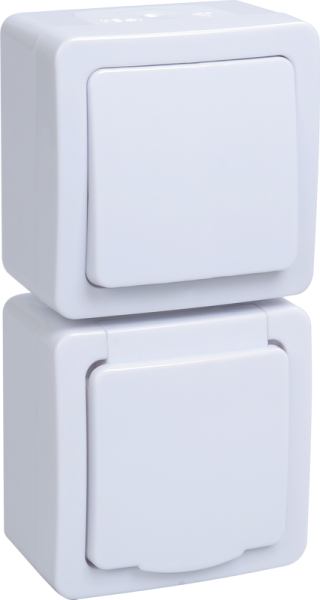 Блок комбинир-ый открыт. установки, клавишный/кнопочный 1 розетка с З/К 10А 250В пластик белый IP54 IEK ГЕРМЕС PLUS