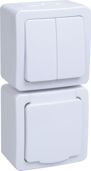Блок комбинир-ый открыт. установки, клавишный/кнопочный 1 розетка с З/К 10А 250В пластик белый IP54 IEK ГЕРМЕС