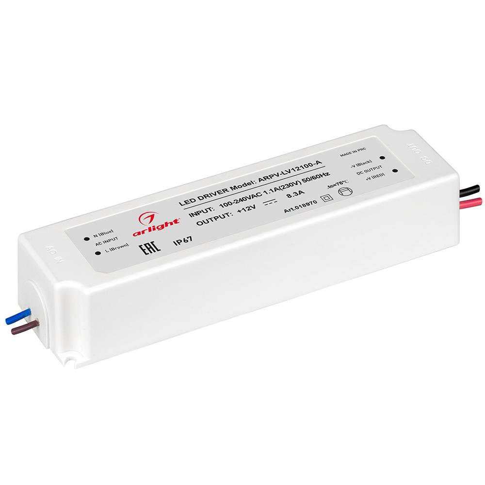 Источник напряжения с гальванической развязкой для светодиодных изделий. Входное напряжение 100-240 VAC. Выходные параметры: 12 В, 8,3 А, 100 Вт. Встроенный PFC 0,5. Герметичный пластиковый корпус IP 67. Рабочая температура -20+50C. Габаритные размеры длина 190 мм, ширина 52 мм, высота 37 мм. Гарантийный срок 3 года.