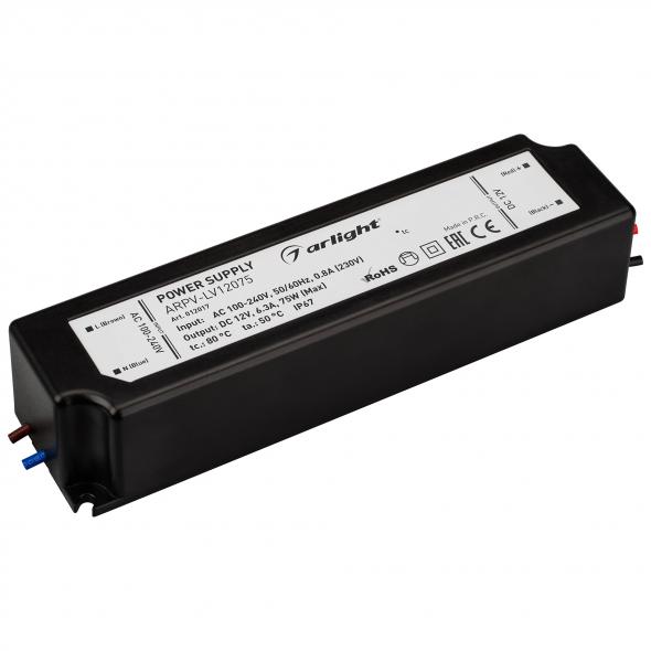 Источник напряжения с гальванической развязкой для светодиодных изделий. Входное напряжение 100-240 VAC. Выходные параметры: 12 В, 6,3 А, 75 Вт. Встроенный PFC >0,5. Герметичный пластиковый корпус IP 67. Рабочая температура -20…+50C°. Габаритные размеры длина 162 мм, ширина 42 мм, высота 34 мм. Гарантийный срок 2 года.