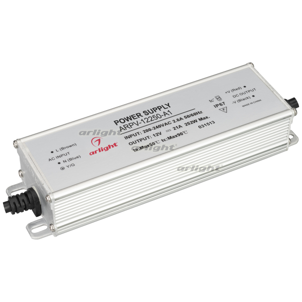 Источник напряжения с гальванической развязкой для светодиодных изделий. Входное напряжение 200-240 VAC. Выходные параметры: 12 В, 21 А, 252 Вт. Герметичный алюминиевый корпус IP 67. Рабочая температура -40… 70C°. Габаритные размеры длина 192 мм, ширина 56 мм, высота 36 мм. Гарантийный срок 3 года.