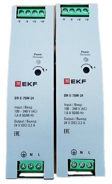 Блоки питания серии DR напряжениями 5/12/24/48 В, EKF устанавливаются на DIN рейку и предназначены для преобразования входного переменного напряжения 100-240 В в постоянное стабилизированное напряжение 5,12,24 или 48 Вольт.