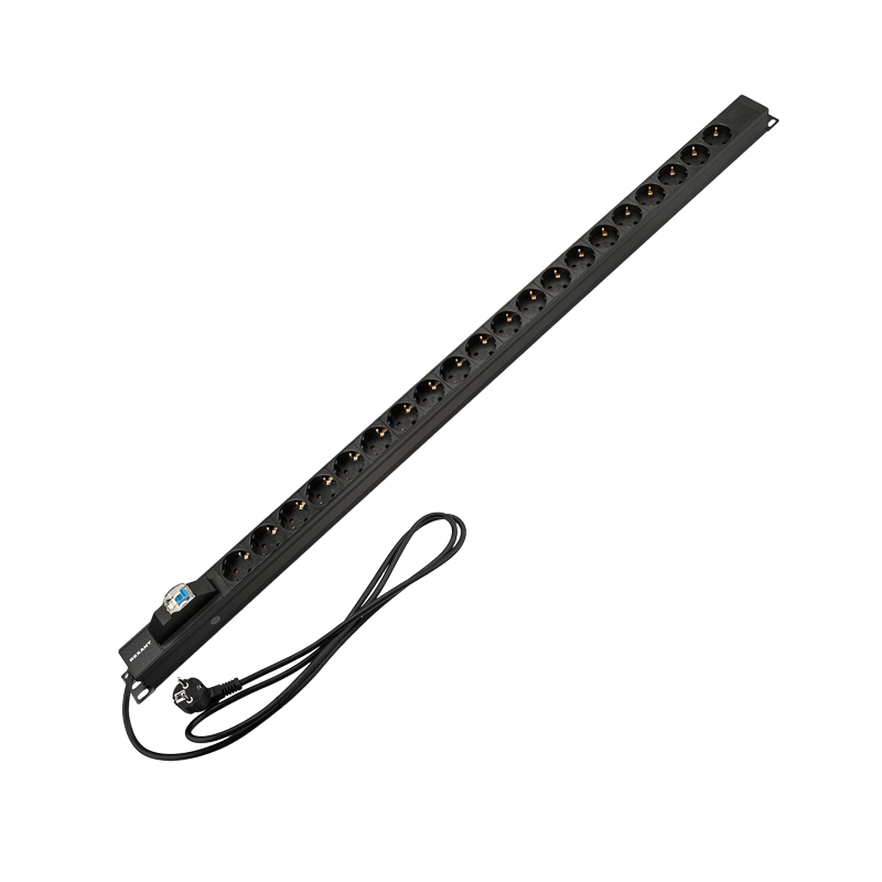 Блок распределения питания для 19" шкафов, вертикальный, 20 розеток СЕЕ 7/4, 16А, автомат защиты, ал