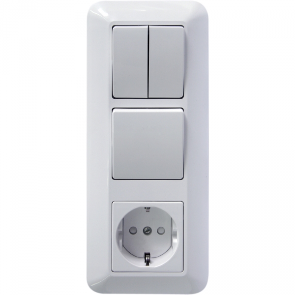Блок комбинированный Schneider Electric ПРИМА (скрытой установки, белый) предназначен для сетей до 250 В, состоит из розетки на 16 А со шторками и с заземлением, одноклавишного выключателя и двухклавишного выключателя, оба на 6 А.- Заземляющий контакт обеспечивает дополнительную защиту от удара электрическим током. При наличии заземления электрический потенциал уходит в землю, защищая человека.