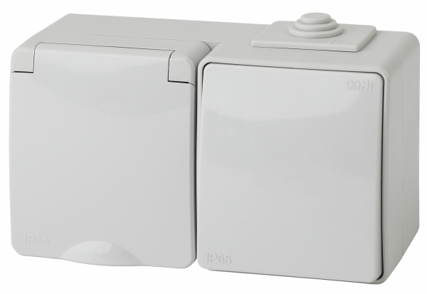 Блок розетка с выключателем влагозащищённый IP65 серии Эра Эксперт открытой установки цвет серый 11-7601-03. Номинальные характеристики 16А 250В. Устройство выполнено из качественного поликарбоната, оснащёно уникальными винтовыми клеммами ЭКСПЕРТ для максимально качественного зажима кабеля в механизме.