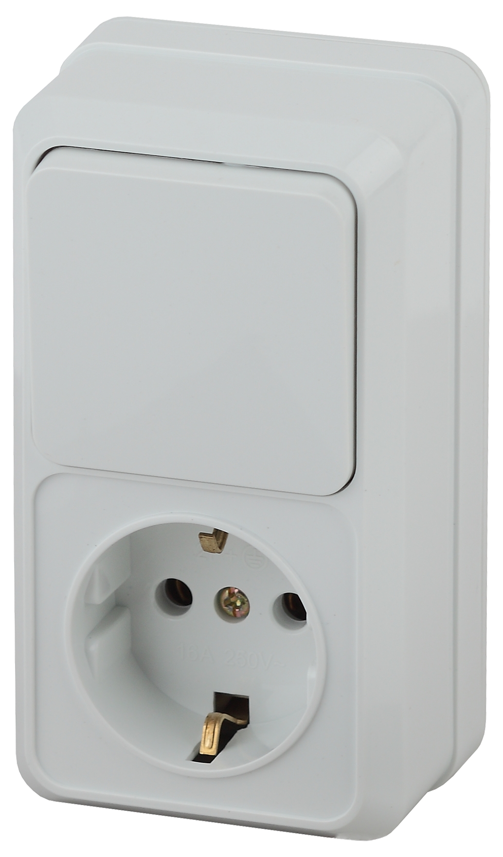 Блок розетка+выкл. верт. 10(16)А-250В, IP20, ОУ, белый 2-705-01