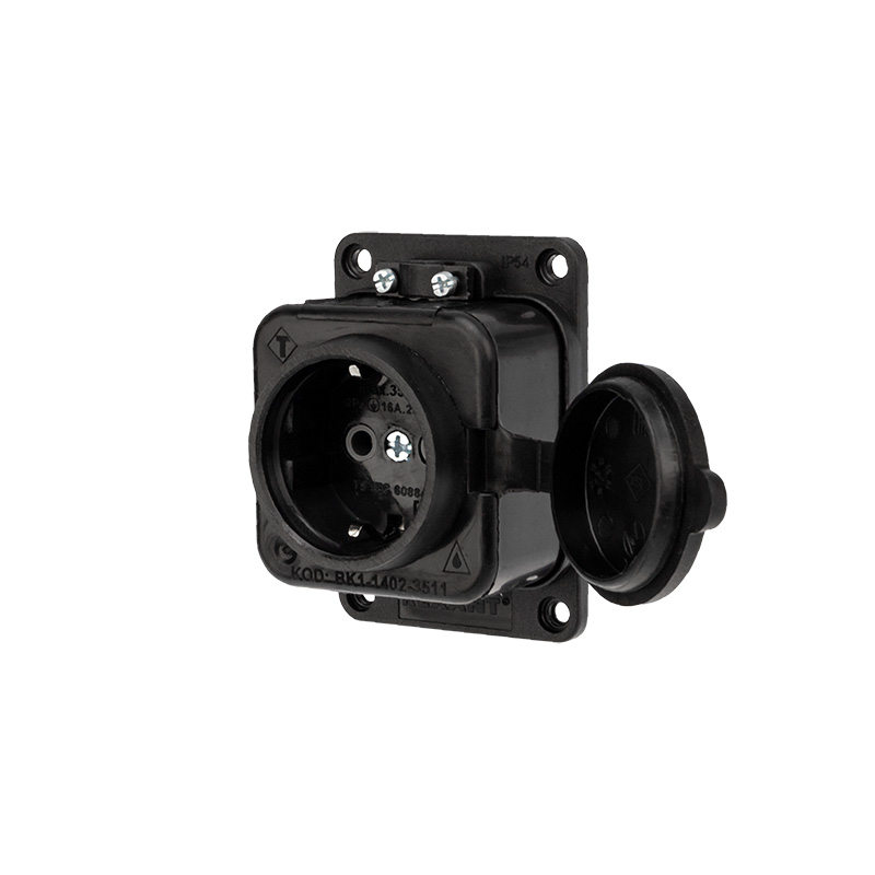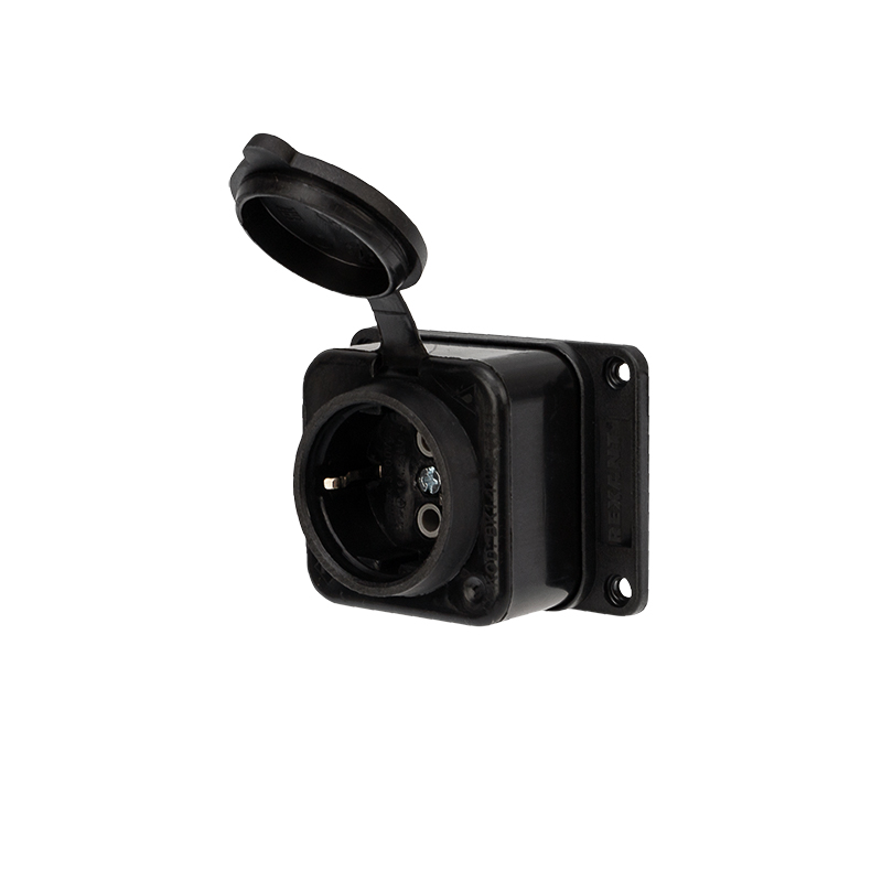 Розетка оснащена защитной крышкой. Для обеспечения безопасности детали, соприкасающиеся с токоведущими частями выполнены из огнеупорного материала, устойчивого к температуре до +850 °С.