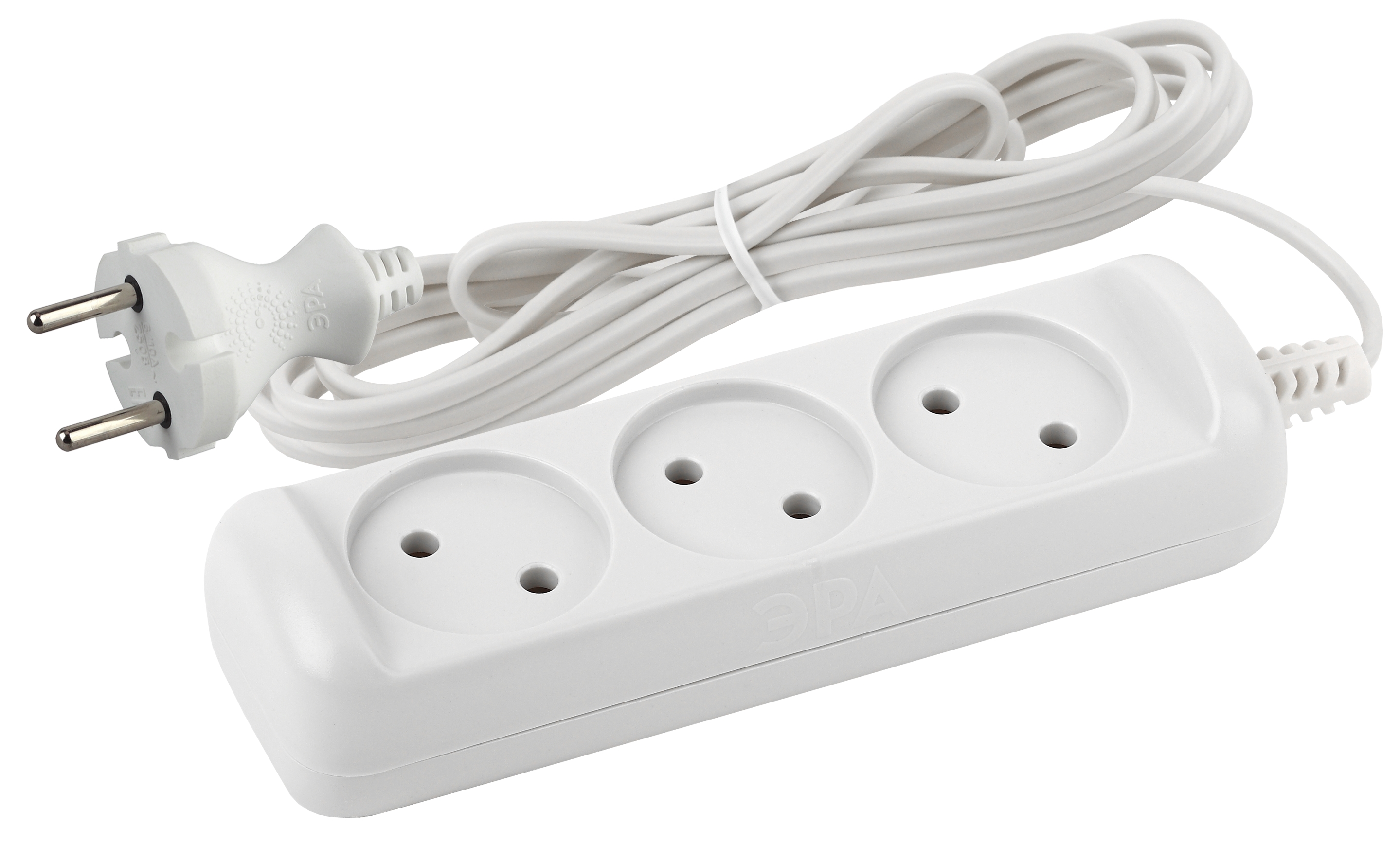 Блок розеточный 3 места 10А пластик белый шнур 3м IP20 ЭРА (Энергия света) _