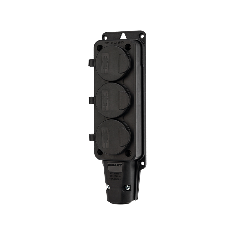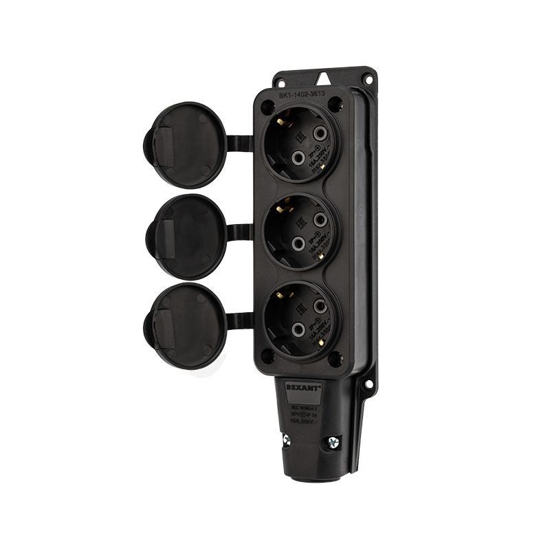 Допускается присоединение треx вилок одновременно с суммарным максимальным током по ним 16 А. Каждое розеточное место оснащено защитной крышкой. Для обеспечения безопасности детали, соприкасающиеся с токоведущими частями выполнены из огнеупорного материала, устойчивого к температуре до +850 °С.