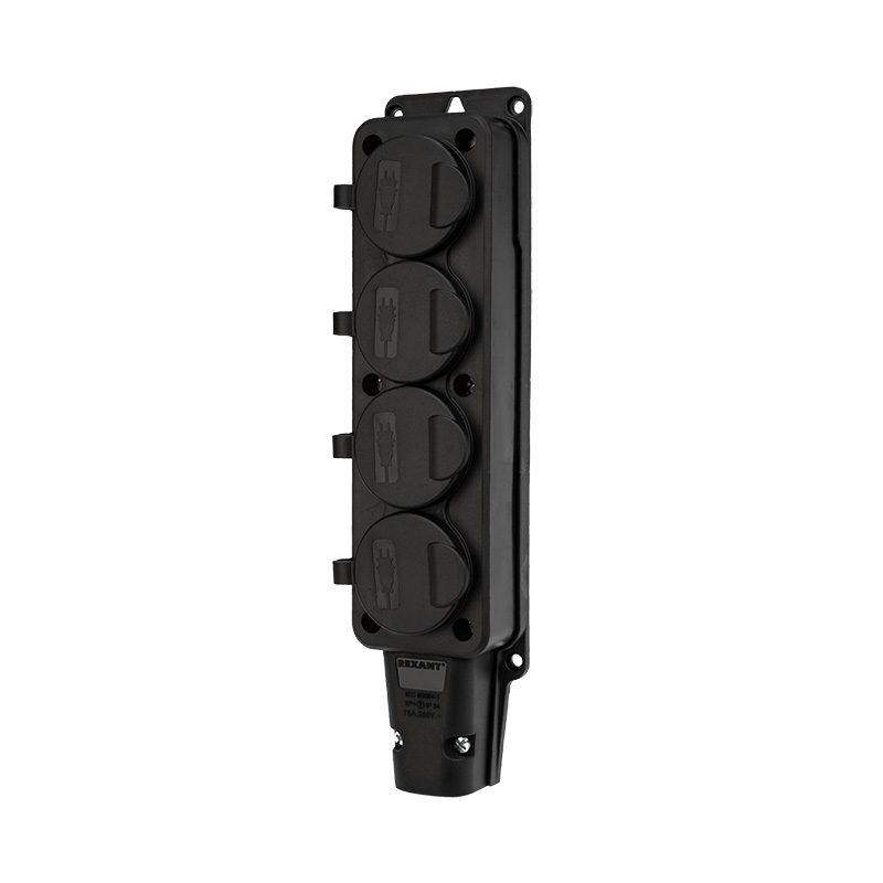Допускается присоединение четыреx вилок одновременно с суммарным максимальным током по ним 16 А. Каждое розеточное место оснащено защитной крышкой. Для обеспечения безопасности детали, соприкасающиеся с токоведущими частями выполнены из огнеупорного материала, устойчивого к температуре до +850 °С.