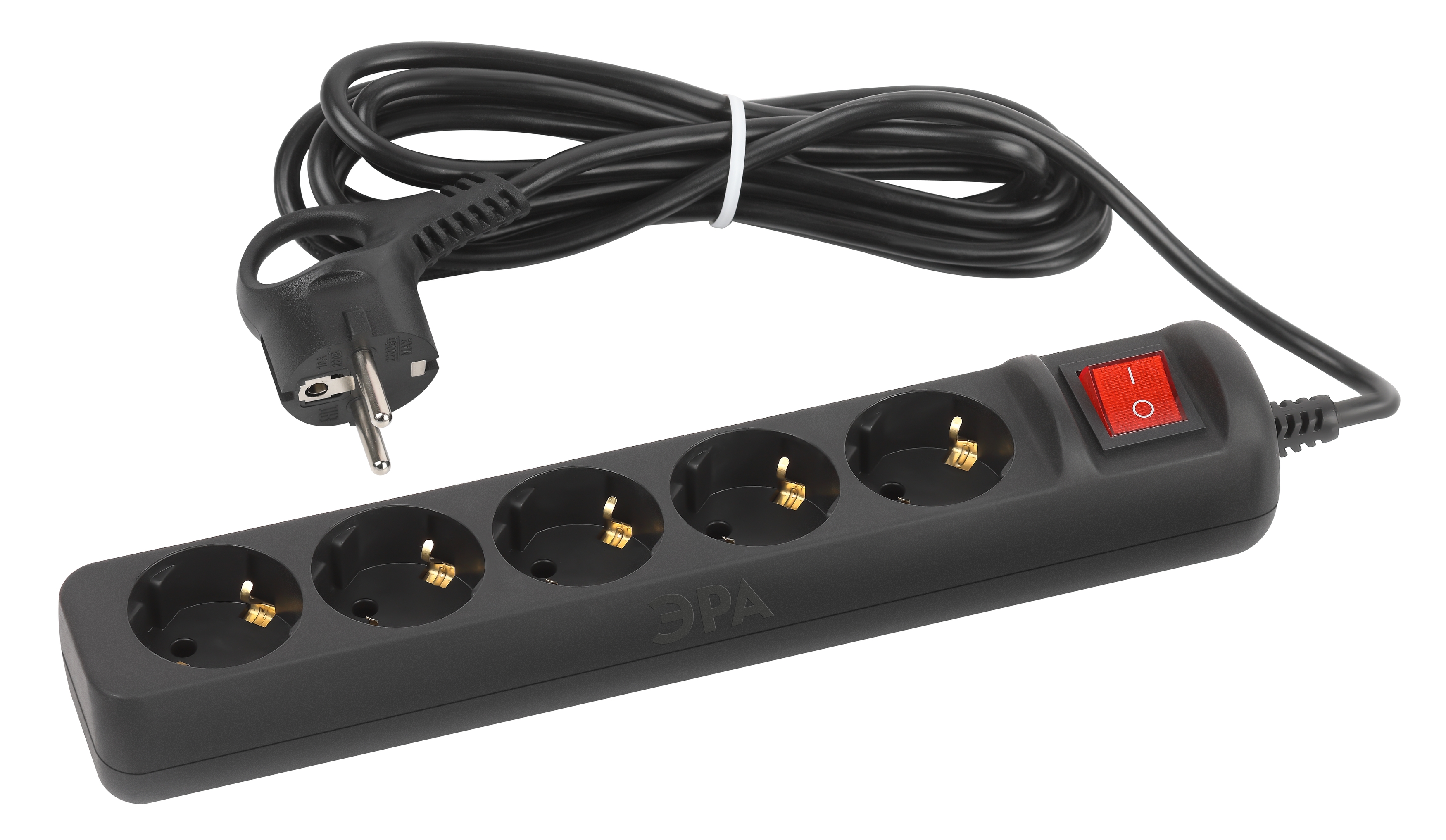 Удлинитель электрический Эра UX-5es-3m-B с заземлением, с выключателем, черный, 5 розеток. Провод ПВС, 3x0,75мм2, 3 м. Рассчитан на максимальную мощность 10А/2200 Вт. Удлинитель Эра станет Вашим надежным помощником, если Ваши любимые электроприборы находятся далеко от розеток. Провод в удлинителях Эра сделан из 100% меди, что делает его абсолютно пожаробезопасным. Корпус выполнен из ударопрочного и негорючего пластика (полипропилен). Вилка обеспечена кольцом для удобного извлечения ее из розетки. Модель удлинителя на 10А позволяет подключить бытовые приборы общей нагрузкой до 2200Вт. Дизайн удлинителя разработан в России командой Эра Style.