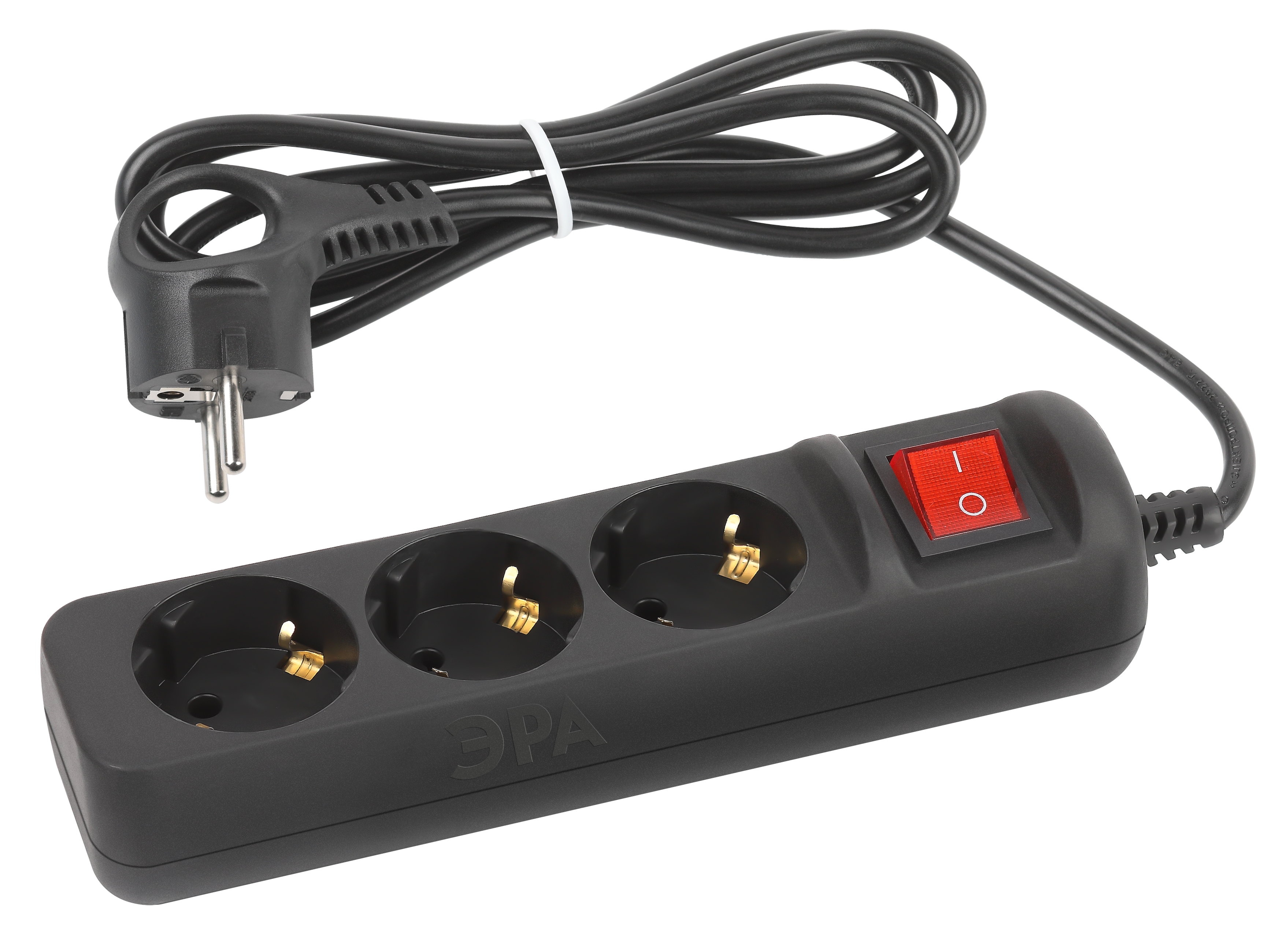 Удлинитель электрический Эра UX-3es-1,5m-B с заземлением, с выключателем, черный, 3 розетки. Провод ПВС, 3x0,75мм2, 1,5 м. Рассчитан на максимальную мощность 10А/2200 Вт. Удлинитель Эра станет Вашим надежным помощником, если Ваши любимые электроприборы находятся далеко от розеток. Провод в удлинителях Эра сделан из 100% меди, что делает его абсолютно пожаробезопасным. Корпус выполнен из ударопрочного и негорючего пластика (полипропилен). Вилка обеспечена кольцом для удобного извлечения ее из розетки. Модель удлинителя на 10А позволяет подключить бытовые приборы общей нагрузкой до 2200Вт. Дизайн удлинителя разработан в России командой Эра Style.