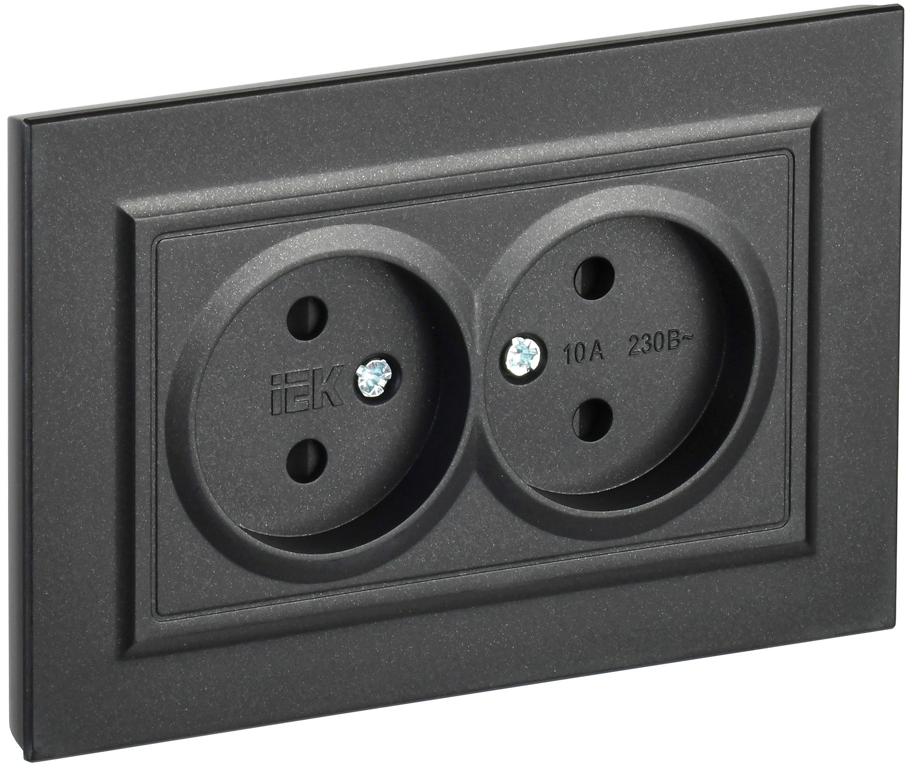 Розетка 2-местная без заземления с защитными шторками 10А в сборе черный IEK BRITE 1/100