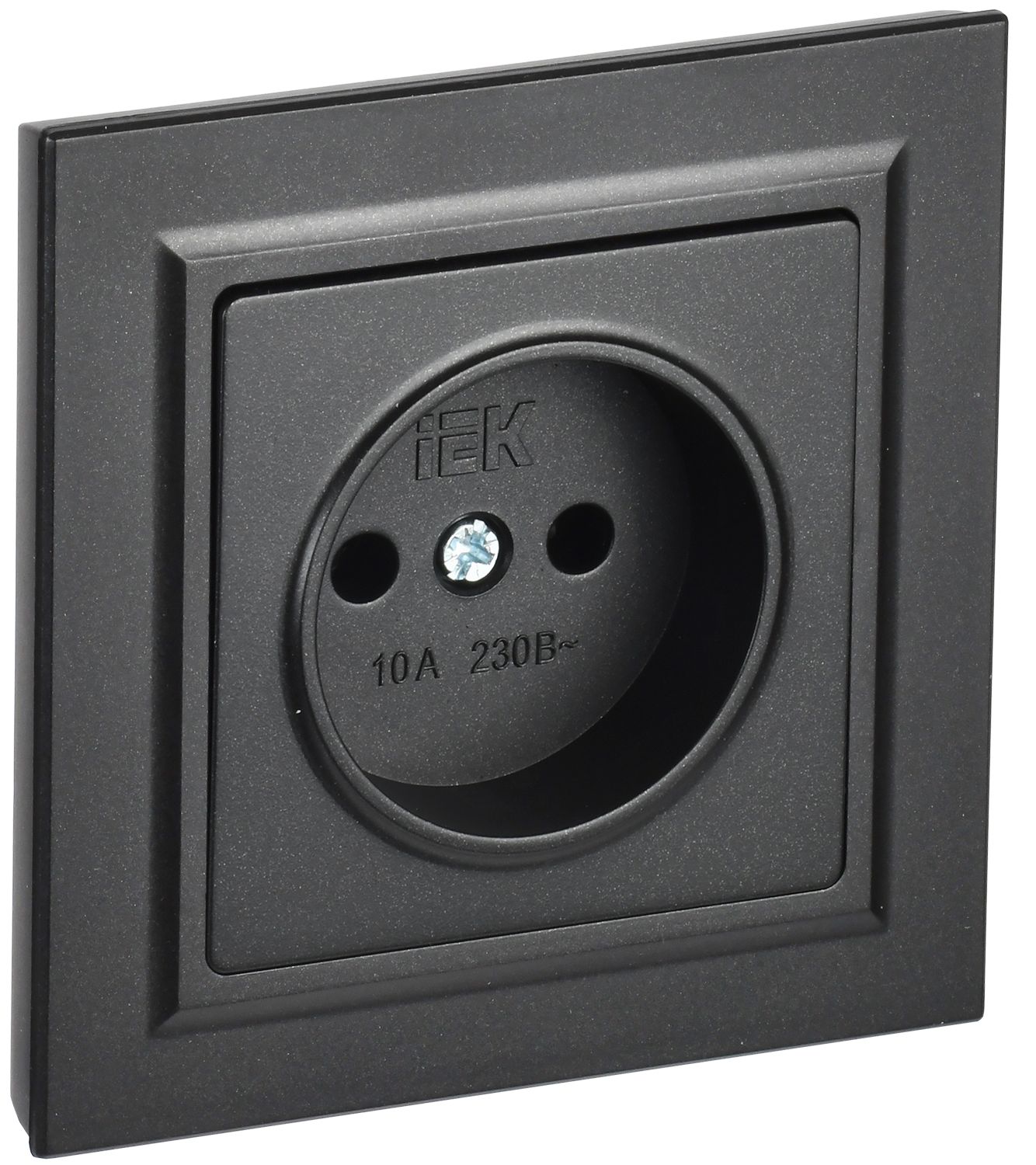 Розетка 1-местная без заземления без защитных шторок 10А в сборе черный IEK BRITE 1/100