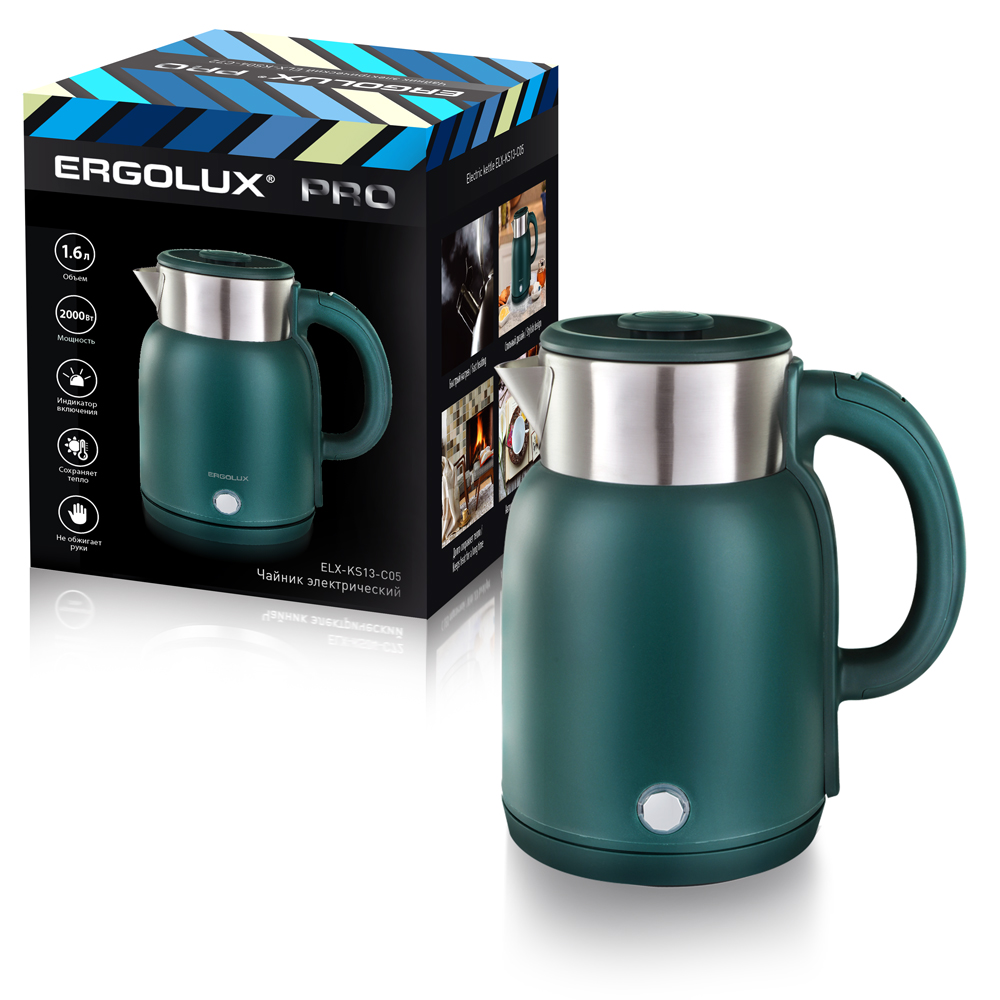 Чайник 2000W 220-240V 1.6л нерж.сталь/пластик зеленый ELX-KS13-C05 ERGOLUX 1/6