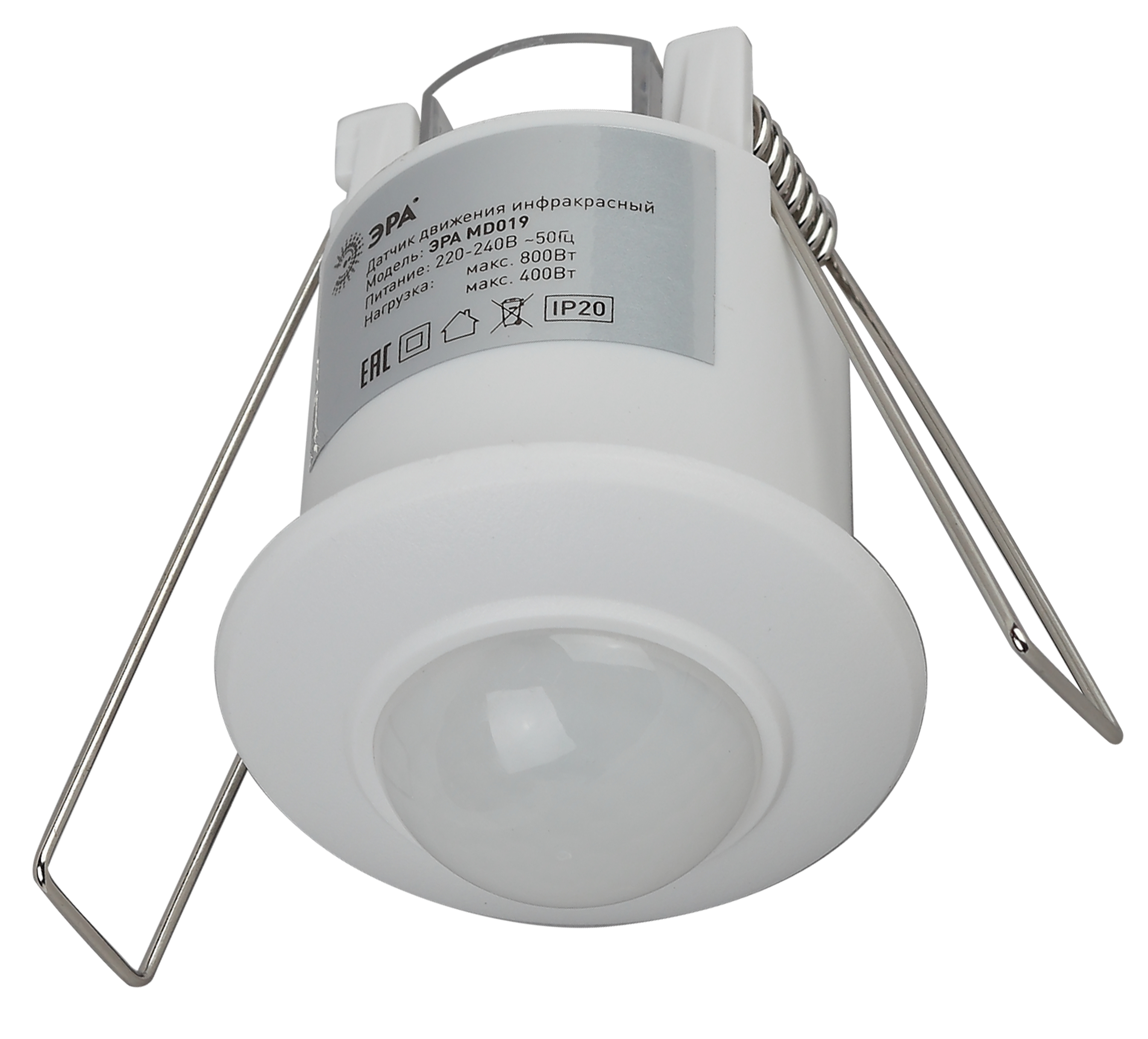 ДАТЧИК ДВИЖЕНИЯ открыт. установки 220В 1200Вт дальность действия 12м угол обнаруж. по горизонт. 120° белый IP44 ЭРА _ Б0044167