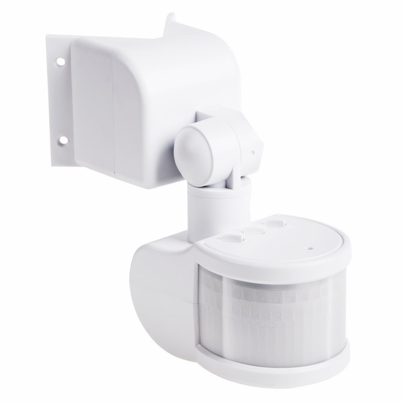 Угловой датчик движения предназначается для установки в места, где требуется более широкий угол обзора, чем у стандартного настенного датчика, например на угол дома, отличается от настенного более широким углом обзора, до 270°. Данный датчик имеет степень пыле- и влагозащиты IP44.