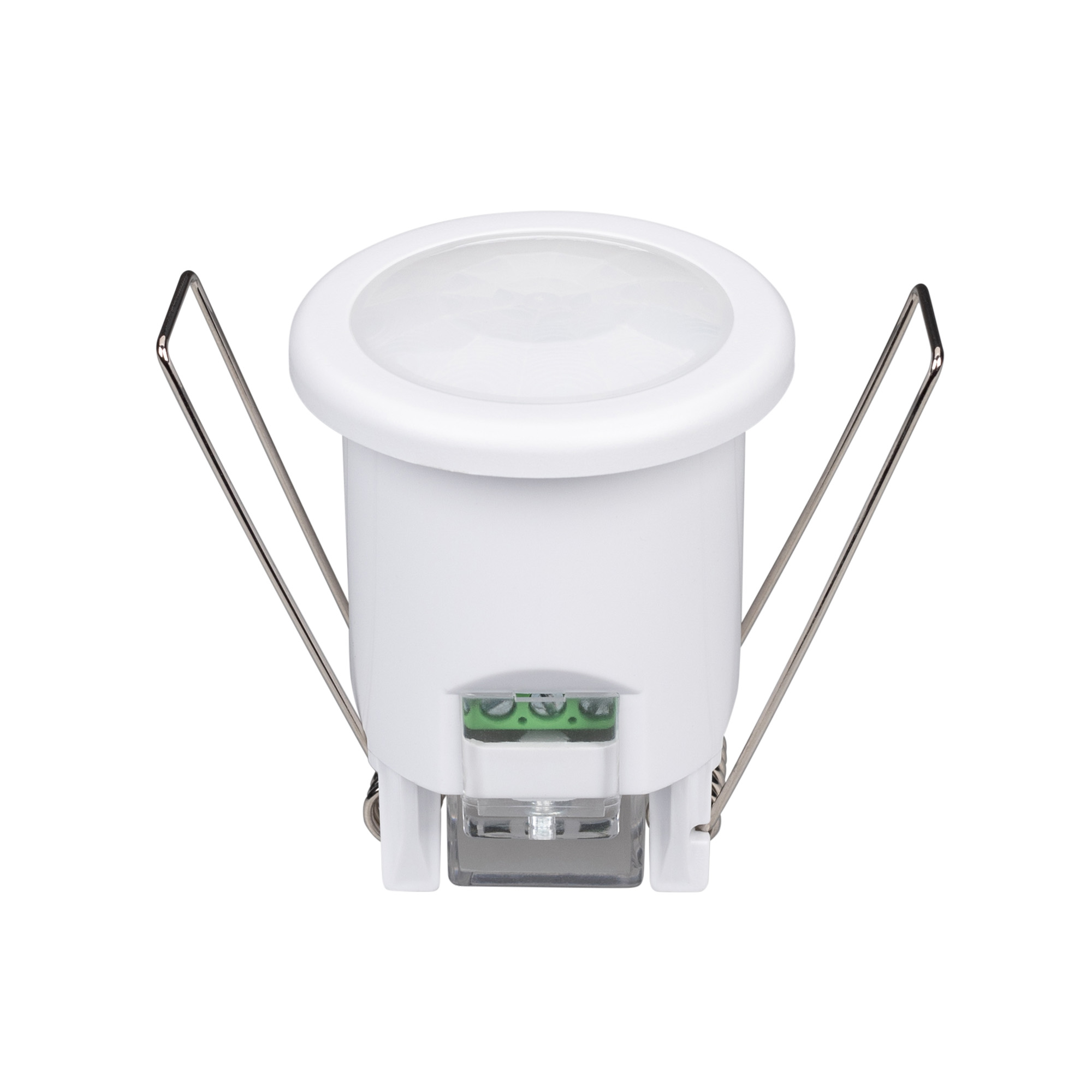 Инфракрасный датчик движения, совмещенный с датчиком освещенности. Высота установки - 2.2 - 4 м. Угол обнаружения 360°. Настройки: время отключения (10 c – 15 мин), зона срабатывания (до 8 м), освещенность (3 - 2000 люкс). Максимальная нагрузка 800 Вт (для ламп накал-я и галогенных), 400 Вт (для светодиодных и люминесцентных ламп), размеры (ØxH) - 50х63мм, установочное отверстие (Ø) - 42 мм. Коммутатор - реле.