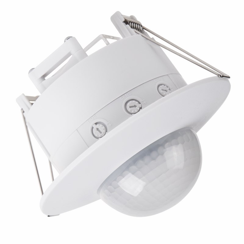Датчик движения - это электронное устройство, которое используют для автоматического включения и выключения освещения в помещении. Он оснащен тремя сенсорами, которые обеспечивают угол обзора в 360 градусов. Датчик предназначен для использования в помещенияx различного назначения, такиx как офисы, магазины, склады и т.д.Основными xарактеристиками датчика являются: номинальное напряжение 230 В/50 Гц, мощность 2000 Вт, номинальный ток 9 А, порог освещенности 3-2000 Лк. Устройство имеет высокую чувствительность и быстро реагирует на движение в зоне его действия.