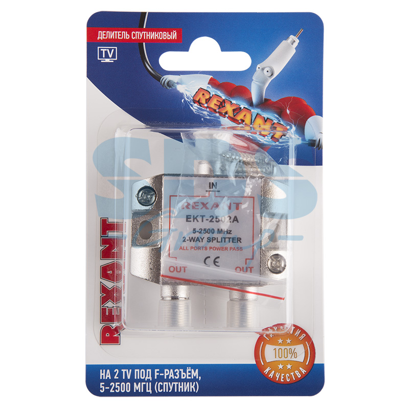 Полоса пропускания делителя от 5 до 2500МГц, что соответствует стандартному эфирному и спутниковому телевидению.