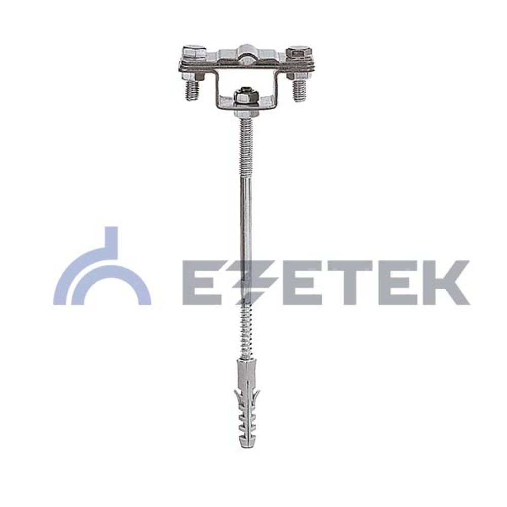 Держатель закрепляет пруток либо полосу токоотводов молниезащиты на бетонном фасаде. Держатель выполнен на основе держателя полоса/пруток, закрепленного на шпильке с резьбой по бетону. Шпилька держателя имеет дюбель, который позволяет закрепить держатель в бетонной конструкции. Проводник закрепляется при помощи держателей на расстоянии 120 мм от фасада.