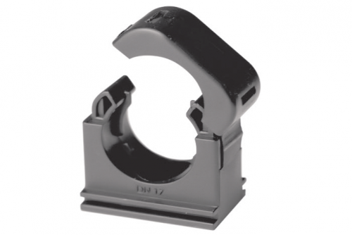 Держатель из полиамида с крышкой фиксируется на поверхностях стен, потолков и т.п. и используется для крепления полиамидных труб. Внутренний диаметр держателя - 23 мм.