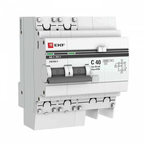Дифференциальный автомат АД-2 40А 30мА C электронный тип AC защита 270В 4,5кА EKF PROxima /32