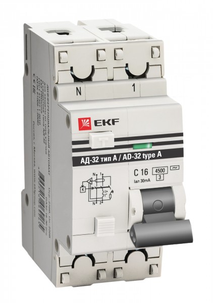 Дифференциальный автоматический выключатель АД-32 EKF PROxima представляет собой аппарат, сочетающий функции автоматического выключателя с устройством защитного отключения. При обнаружении автоматическим выключателем в защищаемом участке сети тока утечки (повреждения) на землю или сверхтока (тока перегрузки или короткого замыкания) происходит срабатывание устройства, приводящее к отключению защищаемой сети. Ассортимент АД-32 дополнен дифавтоматами АД-32 тип А и АД-32 селективными.