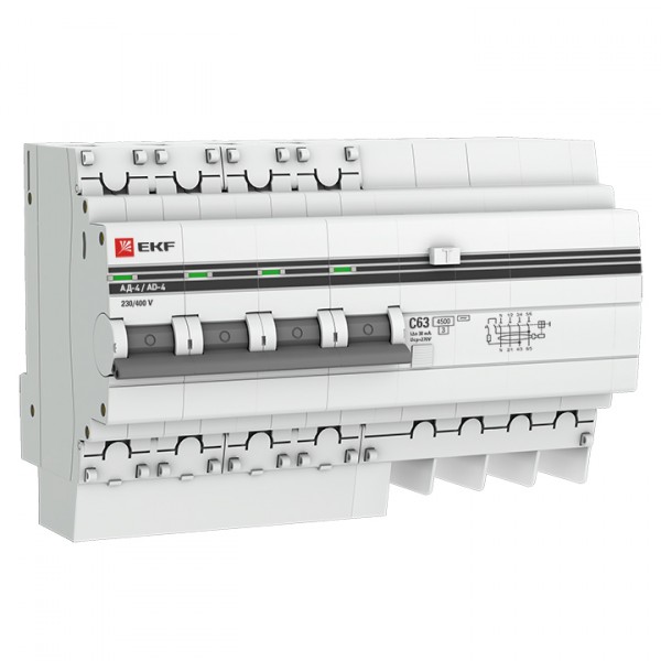 Дифференциальный автоматический выключатель АД-2(4) (S) EKF PROxima представляет собой аппарат, сочетающий функции автоматического выключателя с устройством защитного отключения. При обнаружении автоматическим выключателем в защищаемом участке сети тока утечки (повреждения) на землю или сверхтока (тока перегрузки или короткого замыкания) происходит срабатывание устройства, приводящее к отключению защищаемой сети. Особое отличие дифференциальных автоматов EKF – в наличии встроенного блока защиты от перенапряжения. АД-2 и АД-4 EKF PROxima выпускаются в стандартном и селективном (АД-2S, АД-4S) исполнениях.