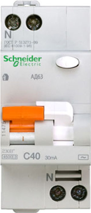 Дифференциальный автомат АД63 1P+N 40А 30mA С электро-механический тип АС 4,5кА SE Домовой