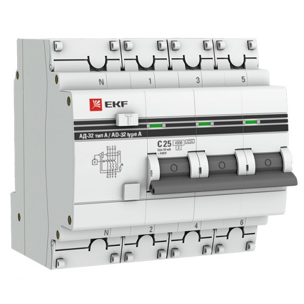 Дифференциальный автоматический выключатель АД-32 EKF PROxima представляет собой аппарат, сочетающий функции автоматического выключателя с устройством защитного отключения. При обнаружении автоматическим выключателем в защищаемом участке сети тока утечки (повреждения) на землю или сверхтока (тока перегрузки или короткого замыкания) происходит срабатывание устройства, приводящее к отключению защищаемой сети. Ассортимент АД-32 дополнен дифавтоматами АД-32 тип А и АД-32 селективными.