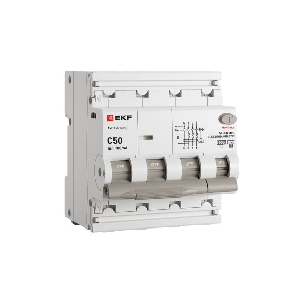 Дифференциальный автомат (АВДТ) 4-полюсный (3P+N) 50А 100мА характеристика C AC/S PROxima EKF