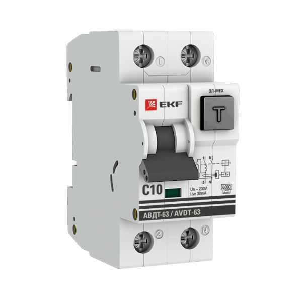 Автоматический выключатель дифференциального тока АВДТ-63 EKF PROxima представляет аппарат, сочетающий функции автоматического выключателя с электромеханическим или электронным УЗО. При обнаружении автоматическим выключателем в защищаемом участке сети тока утечки (повреждения) на землю или сверхтока (тока перегрузки иликороткого замыкания) происходит срабатывание устройства, приводящее к отключению защищаемой сети. Возможна коммутация алюминиевым и медным проводником.Автоматический выключатель дифференциального тока малогабаритный АВДТ-63М EKF PROxima представляет аппарат, сочетающий функции автоматического выключателя с электронным УЗО типа АС в компактном корпусе шириной один модуль. При обнаружении автоматическим выключателем на защищаемом участке сети тока утечки (повреждения) на землю или сверхтока (тока перегрузки или короткого замыкания) происходит срабатывание устройства, приводящее к отключению защищаемой сети. Особое отличие дифференциальных автоматических выключателей EKF с электронным УЗО – в наличии блока защиты от перенапряжения. Возможна коммутация алюминиевым и медным проводом.