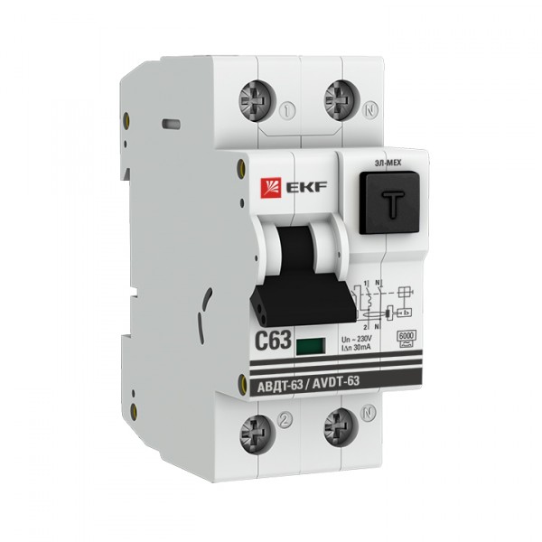 Автоматический выключатель дифференциального тока АВДТ-63 EKF PROxima представляет аппарат, сочетающий функции автоматического выключателя с электромеханическим или электронным УЗО. При обнаружении автоматическим выключателем в защищаемом участке сети тока утечки (повреждения) на землю или сверхтока (тока перегрузки или короткого замыкания) происходит срабатывание устройства, приводящее к отключению защищаемой сети. Возможна коммутация алюминиевым и медным проводником. Автоматический выключатель дифференциального тока малогабаритный АВДТ-63М EKF PROxima представляет аппарат, сочетающий функции автоматического выключателя с электронным УЗО типа АС в компактном корпусе шириной один модуль. При обнаружении автоматическим выключателем на защищаемом участке сети тока утечки (повреждения) на землю или сверхтока (тока перегрузки или короткого замыкания) происходит срабатывание устройства, приводящее к отключению защищаемой сети. Особое отличие дифференциальных автоматических выключателей EKF с электронным УЗО – в наличии блока защиты от перенапряжения. Возможна коммутация алюминиевым и медным проводом.